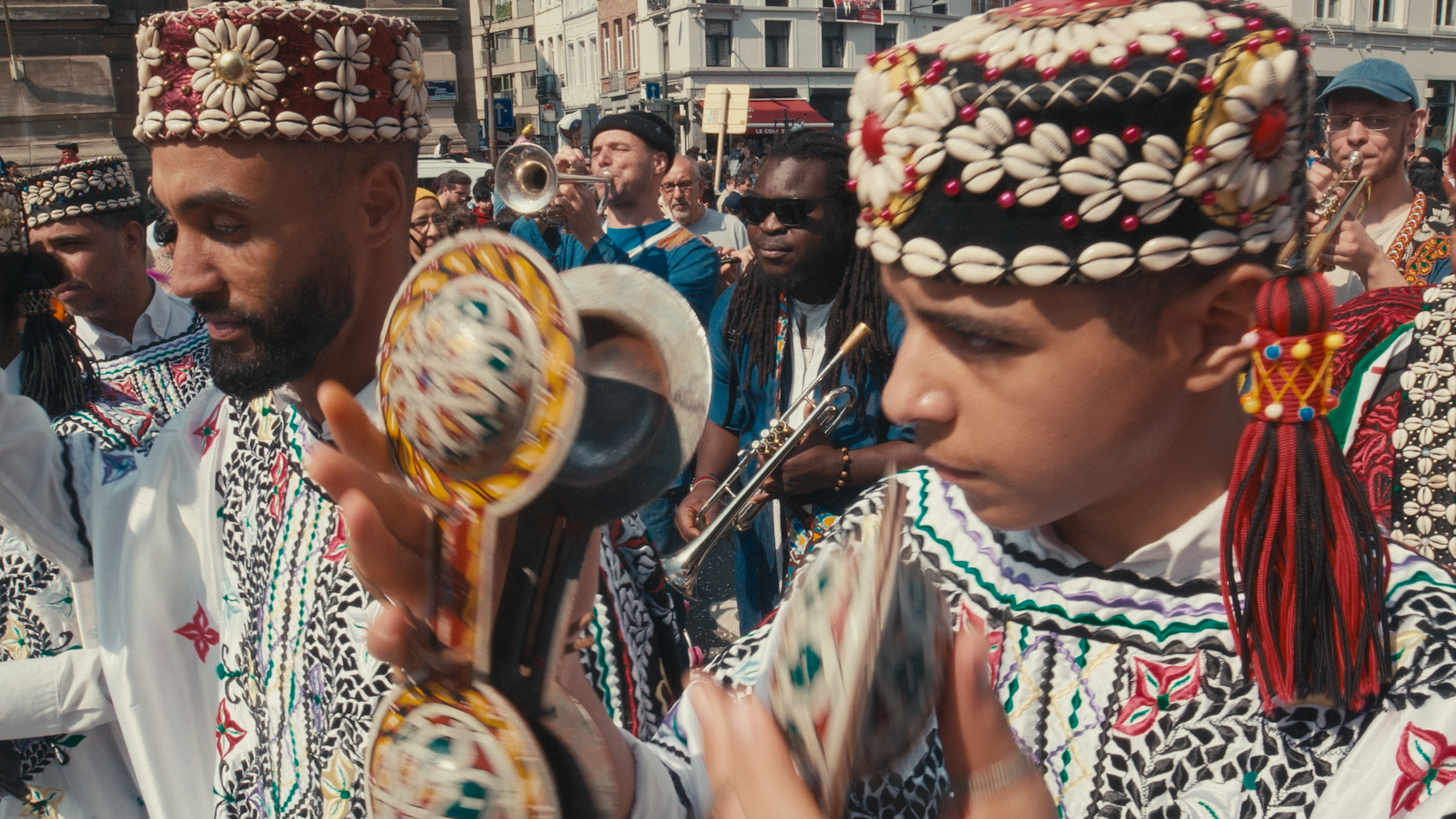 NL/ Wist je dat Brussel zich de Gnawa-hoofdstad van Europa mag noemen? Deze traditionele muziek-, dans- en zangcultuur uit Marokko, in 2019 erkend door de UNESCO tot immaterieel erfgoed, telt in onze hoofdstad zo’n 40-tal muzikanten. Muziekproductiehuis MetX werkt al tientallen jaren samen met hen om deze rijke traditie verder te doen leven via opleidingsprojecten en uitwisselingen met andere culturen en artistieke stromingen. Regisseur Sebastian Strycharski kreeg carte blanche om een aantal van hen te volgen tijdens repetities en optredens. Hij schets een uniek beeld van deze soms mysterieuze, dan weer uitbundige maar altijd genereuze gemeenschap.